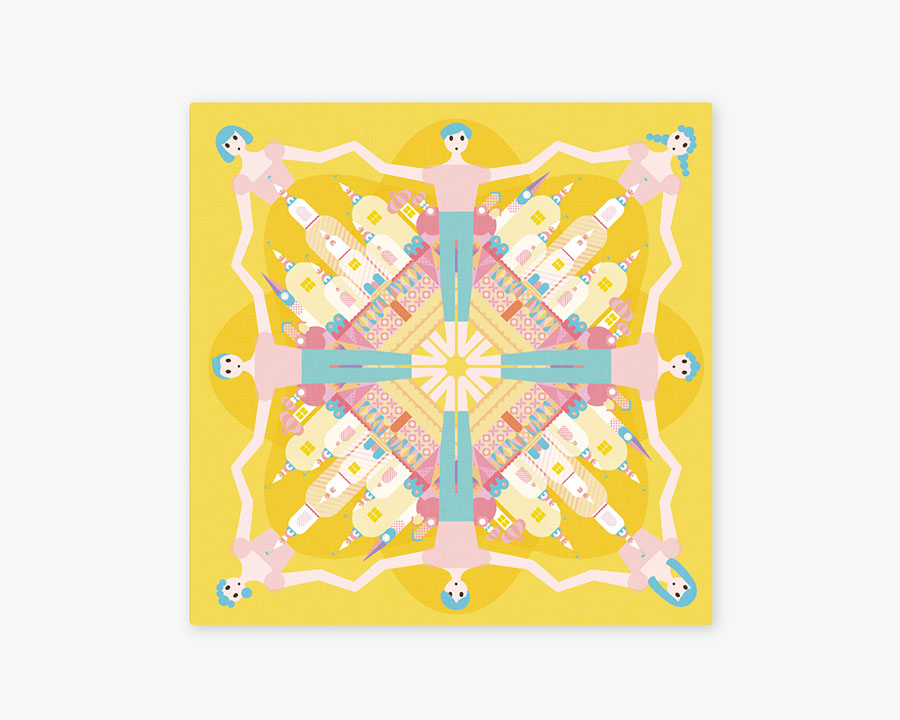 東北復興支援プロジェクト「やさしいハンカチ展」/ ハンカチ / AD & D & lustration:Takuto Yoshida